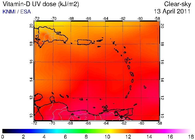 Clear-sky UV index:   erythemal