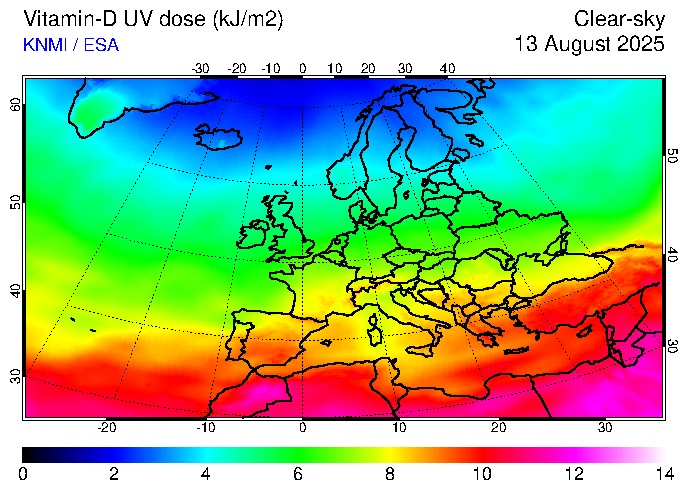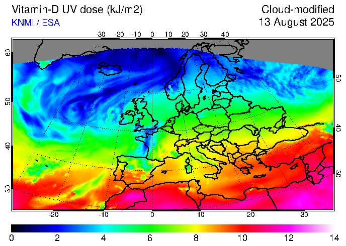 Vitamin-D UV dose of 13 August 2025