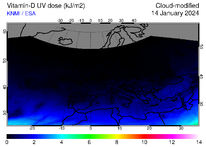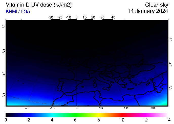Vitamin-D UV dose of 14 January 2024