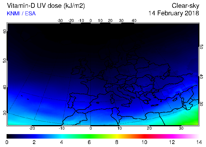 Vitamin-D UV dose of 14 February 2018