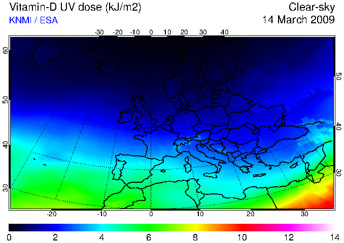 Vitamin-D UV dose of 14 March 2009