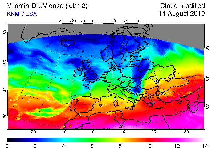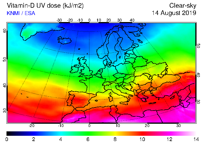 Vitamin-D UV dose of 14 August 2019