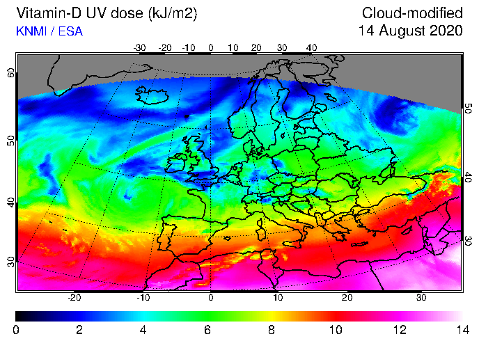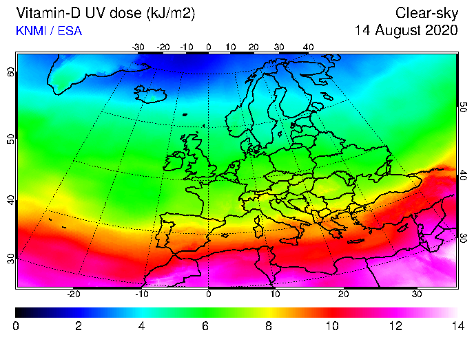 Vitamin-D UV dose of 14 August 2020