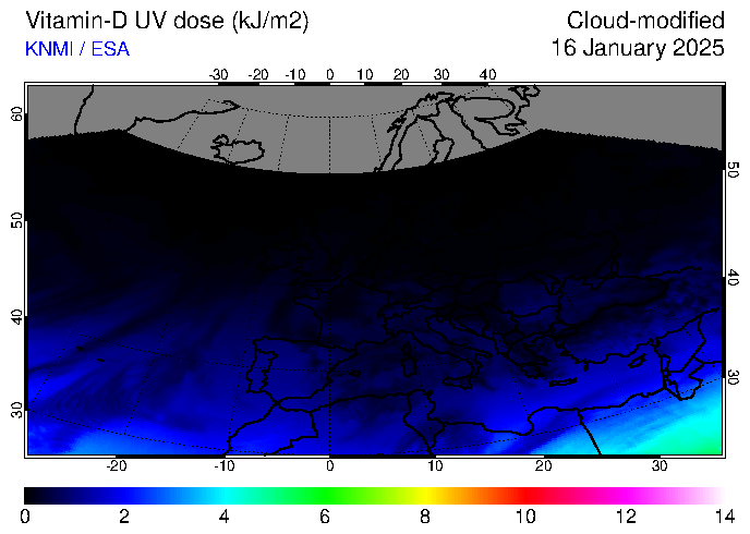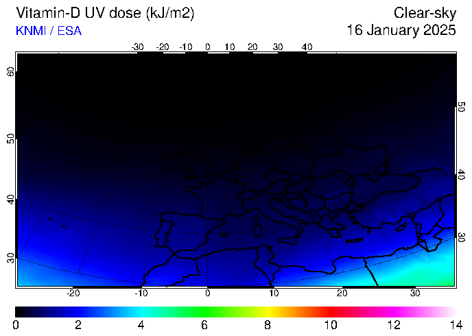 Vitamin-D UV dose of 16 January 2025