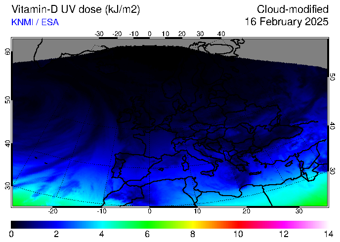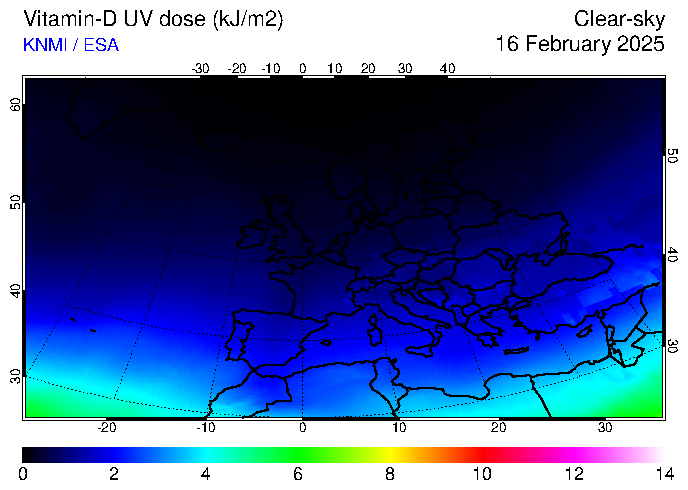 Vitamin-D UV dose of 16 February 2025