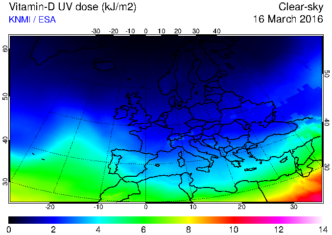 Vitamin-D UV dose of 16 March 2016