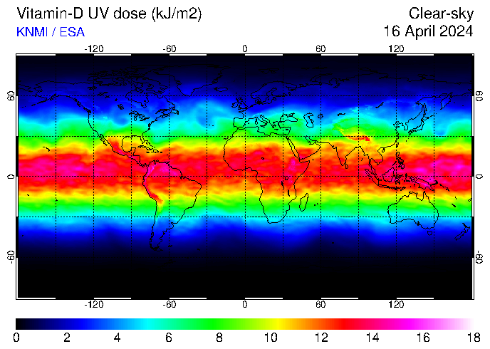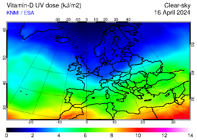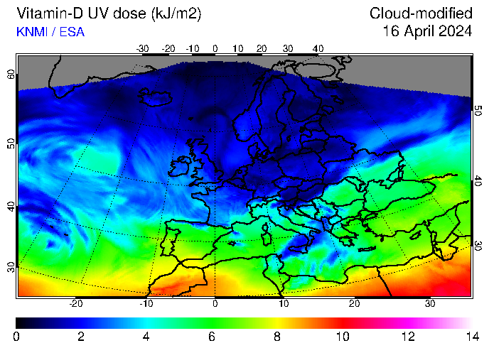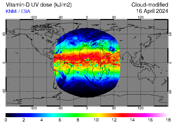 Vitamin-D UV dose of 16 April 2024