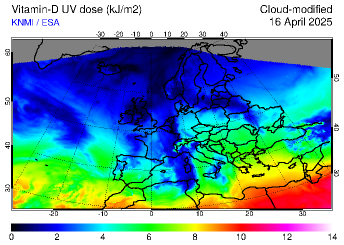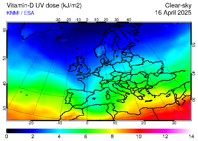 Vitamin-D UV dose of 16 April 2025