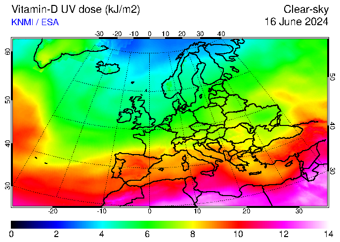 Vitamin-D UV dose of 16 June 2024