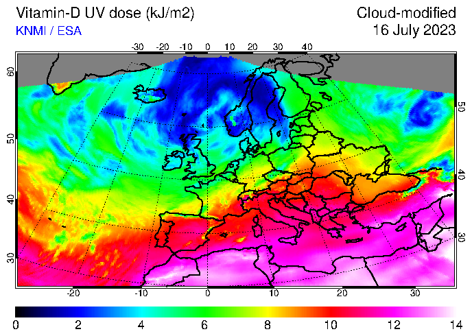 Vitamin-D UV dose of 16 July 2023