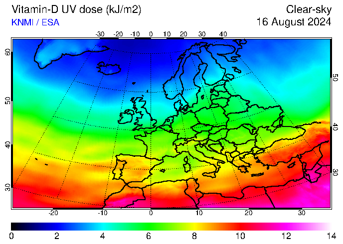 Vitamin-D UV dose of 16 August 2024