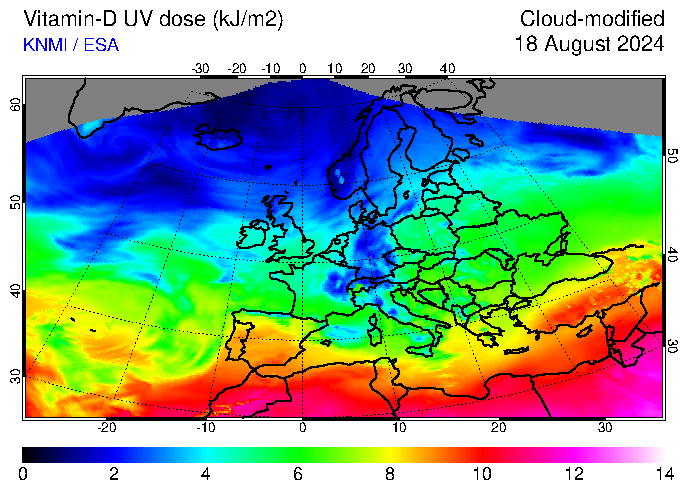 Vitamin-D UV dose of 18 August 2024