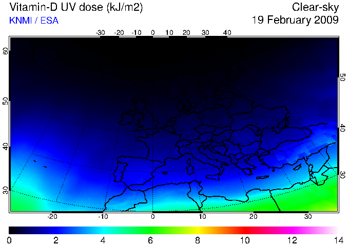 Vitamin-D UV dose of 19 February 2009