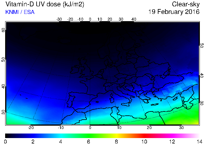 Vitamin-D UV dose of 19 February 2016