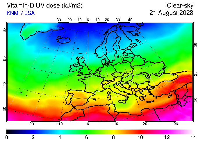 Vitamin-D UV dose of 21 August 2023