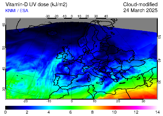 Vitamin-D UV dose of 24 March 2025