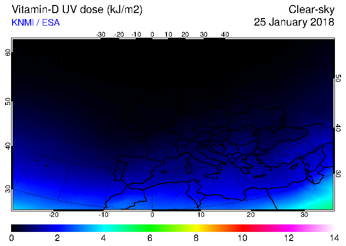 Vitamin-D UV dose of 25 January 2018