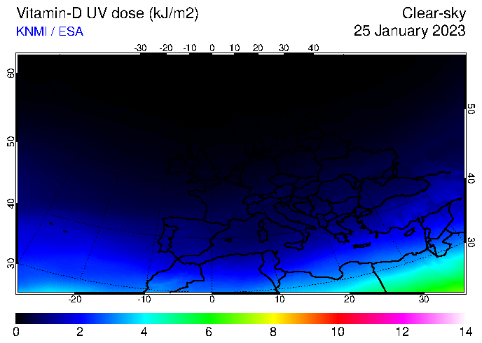 Vitamin-D UV dose of 25 January 2023