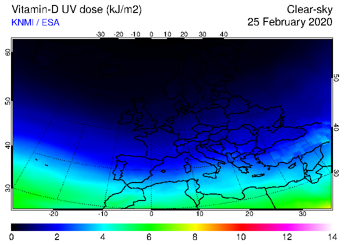 Vitamin-D UV dose of 25 February 2020