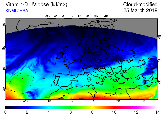 Vitamin-D UV dose of 25 March 2019