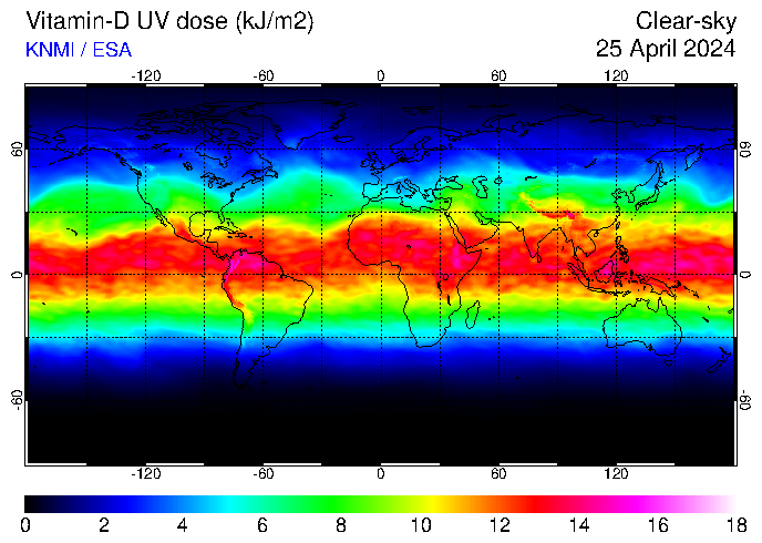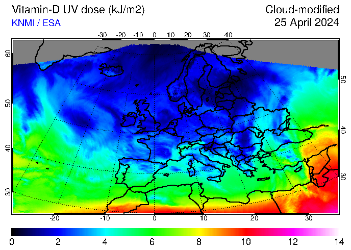 Vitamin-D UV dose of 25 April 2024