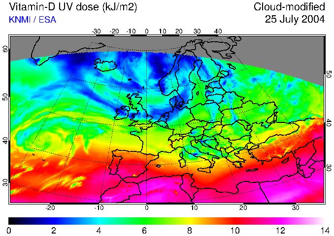 Vitamin-D UV dose of 25 July 2004