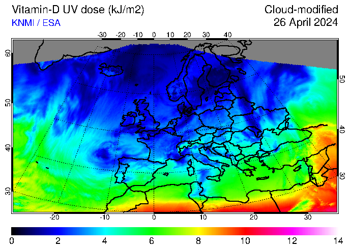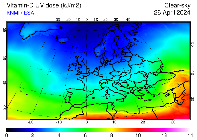 Vitamin-D UV dose of 26 April 2024