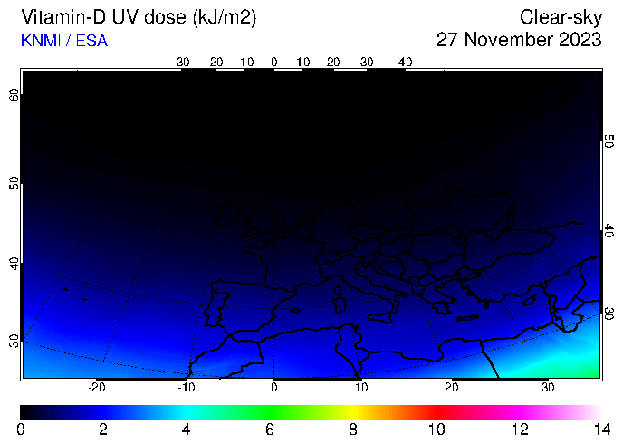 Vitamin-D UV dose of 27 November 2023