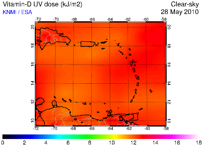 Clear-sky UV index:   erythemal