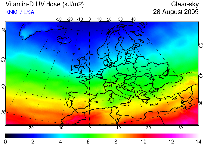 Vitamin-D UV dose of 28 August 2009