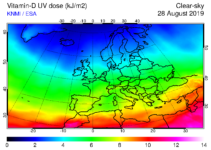 Vitamin-D UV dose of 28 August 2019