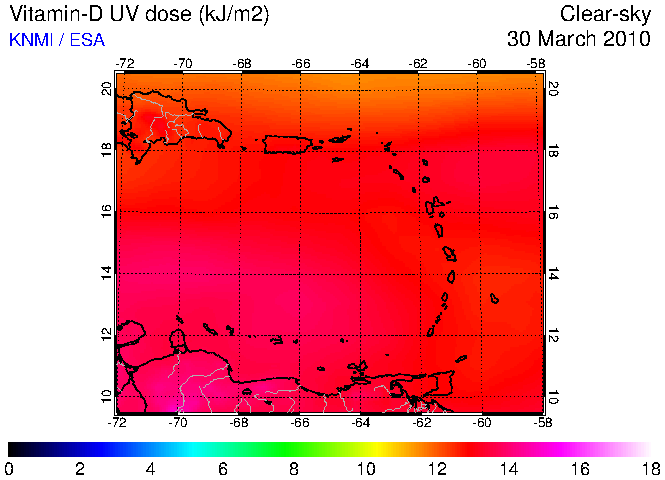 Clear-sky UV index:   erythemal