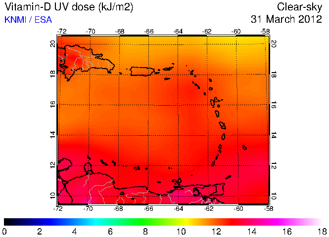 Clear-sky UV index:   erythemal