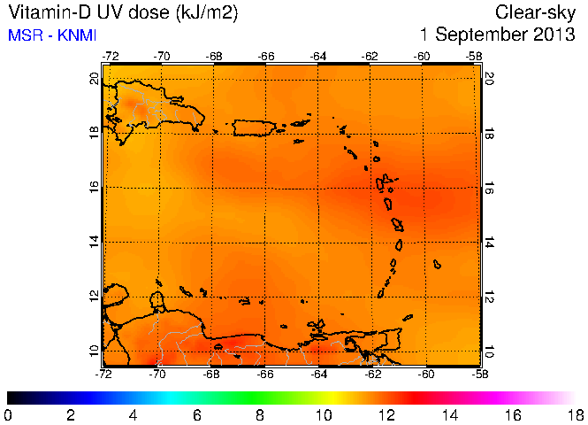 Clear-sky UV index:   erythemal