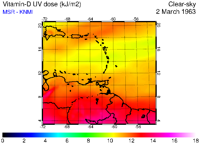 Clear-sky UV index:   erythemal