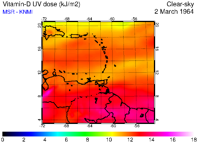 Clear-sky UV index:   erythemal