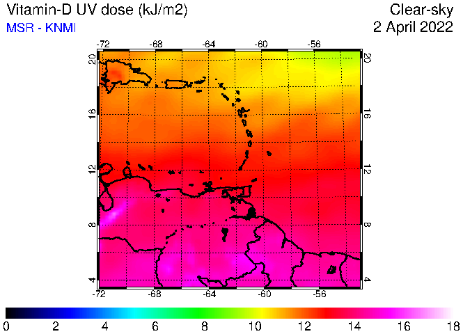Clear-sky UV index:   erythemal