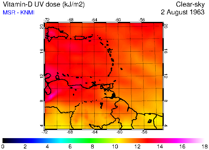 Clear-sky UV index:   erythemal