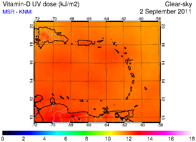 Clear-sky UV index:   erythemal