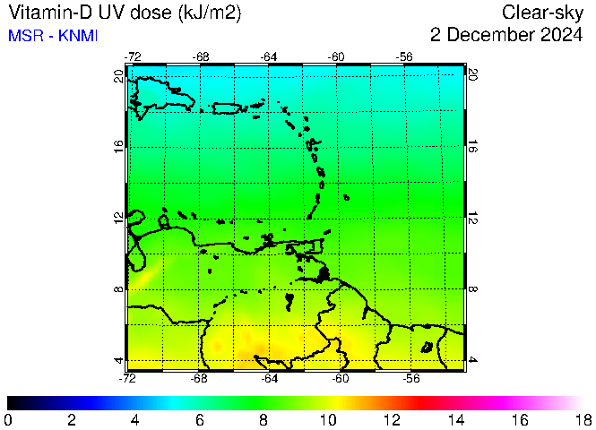 Clear-sky UV index:   erythemal