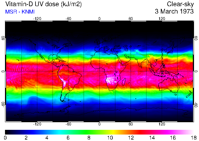 Daily UV dose:   erythemal  |  vitamin-D  |  DNA-damage