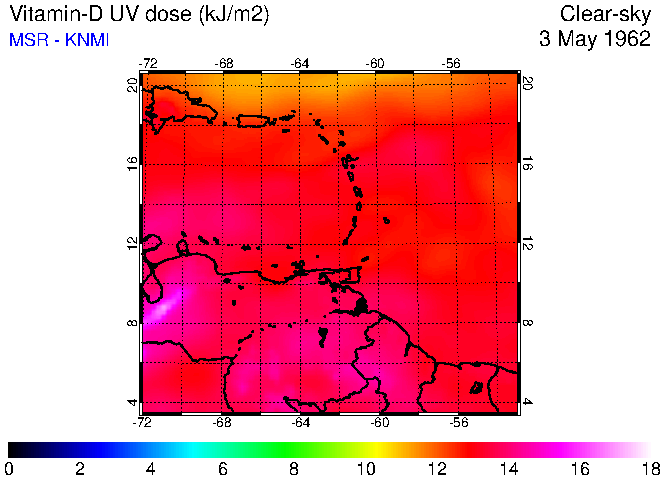 Clear-sky UV index:   erythemal