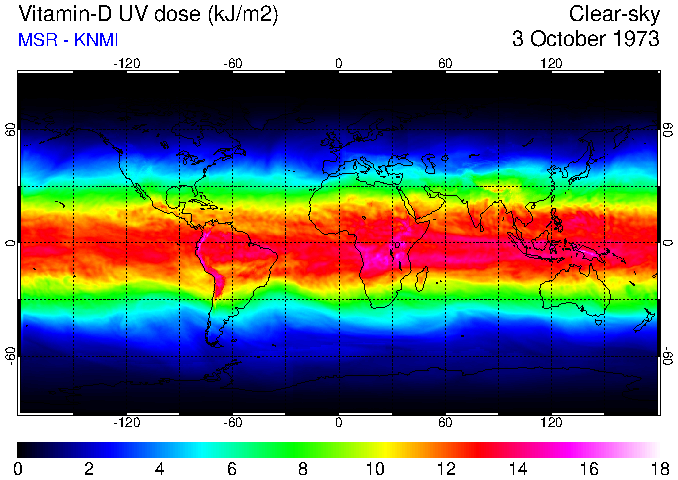 Daily UV dose:   erythemal  |  vitamin-D  |  DNA-damage
