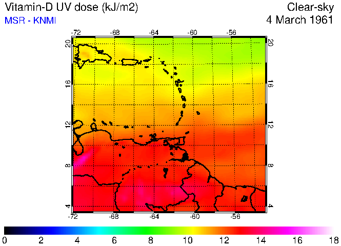 Clear-sky UV index:   erythemal