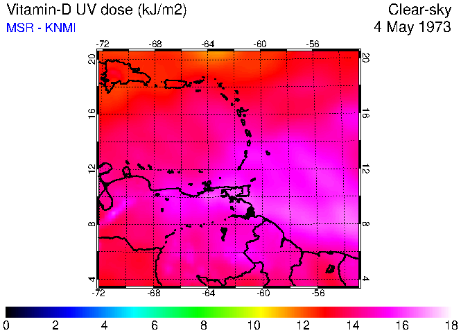 Clear-sky UV index:   erythemal