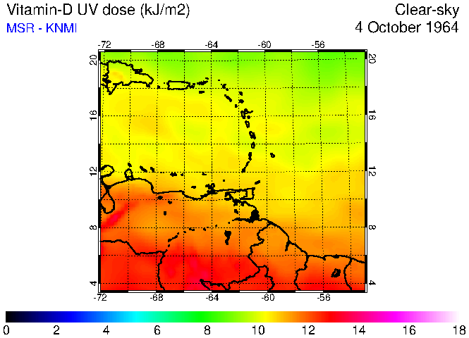 Clear-sky UV index:   erythemal