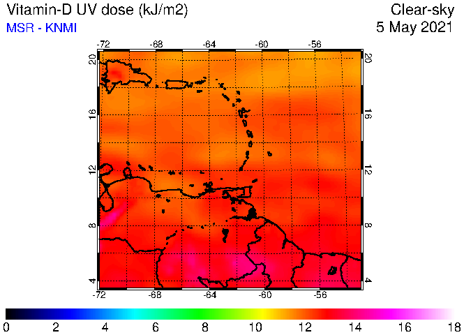 Clear-sky UV index:   erythemal