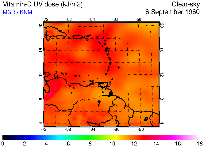Clear-sky UV index:   erythemal