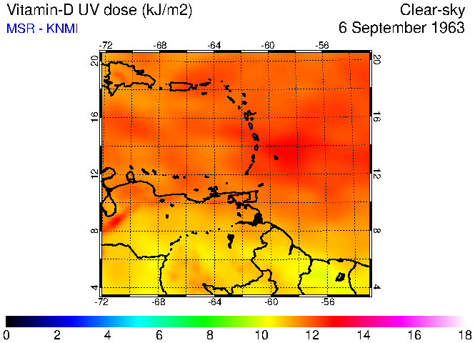 Clear-sky UV index:   erythemal
