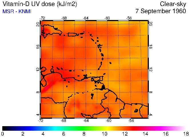 Clear-sky UV index:   erythemal